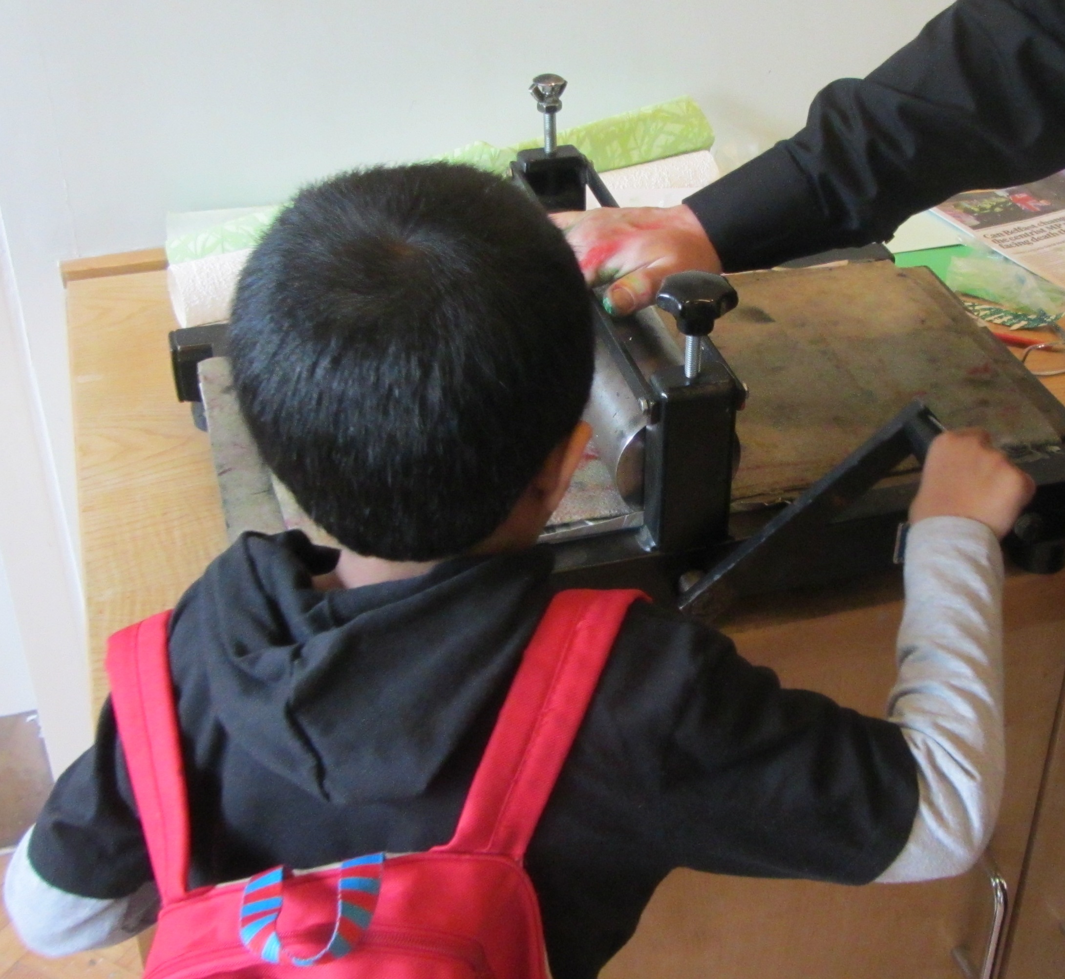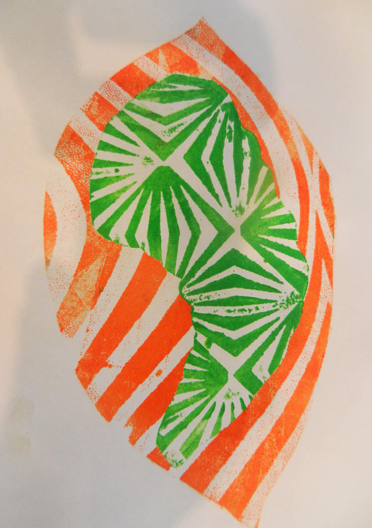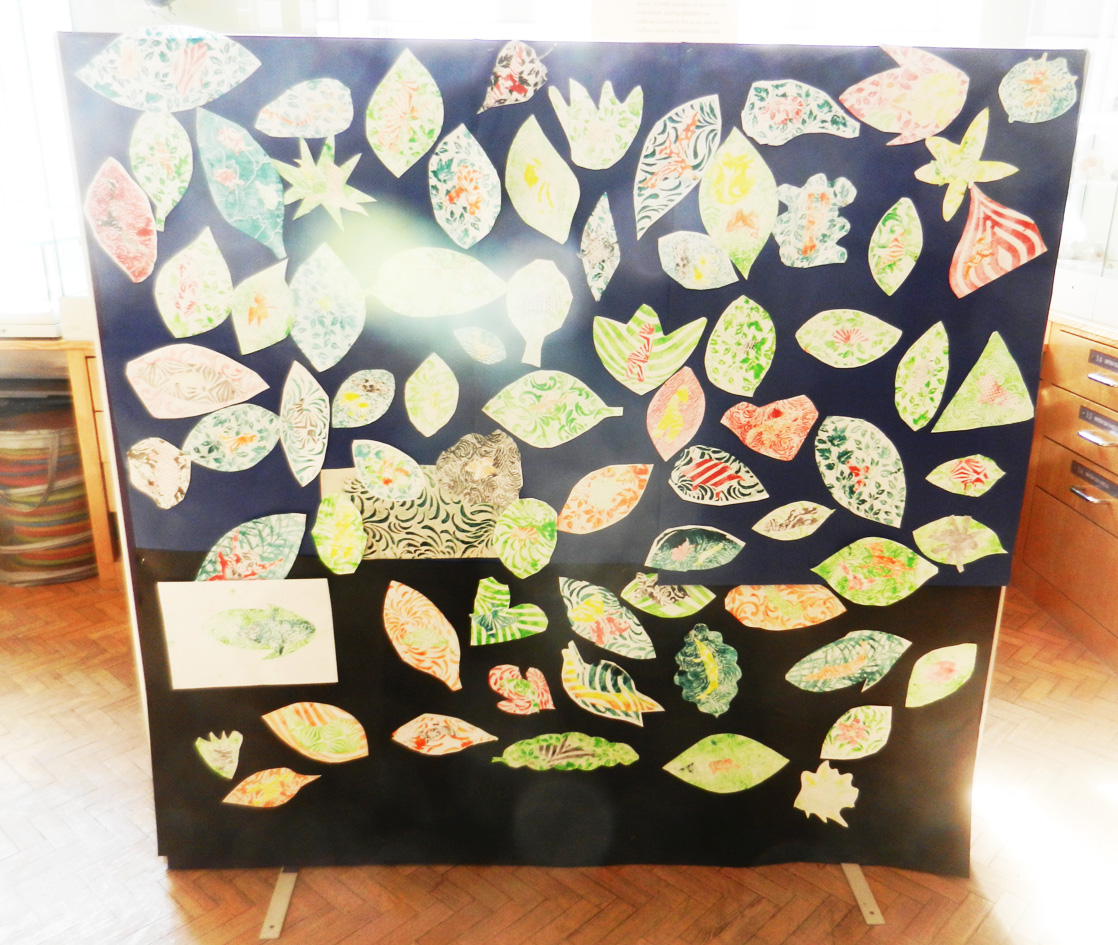 To celebrate the opening of the new display ” Natures Library ” at Manchester Museum, Alan Birch spent a day printing with families . Children took their inspiration from the natural world, and printed silhouettes of natural forms onto shaped leaves. Participants printed two copies, one to take home, and one to add to the jungle installation in the museum.